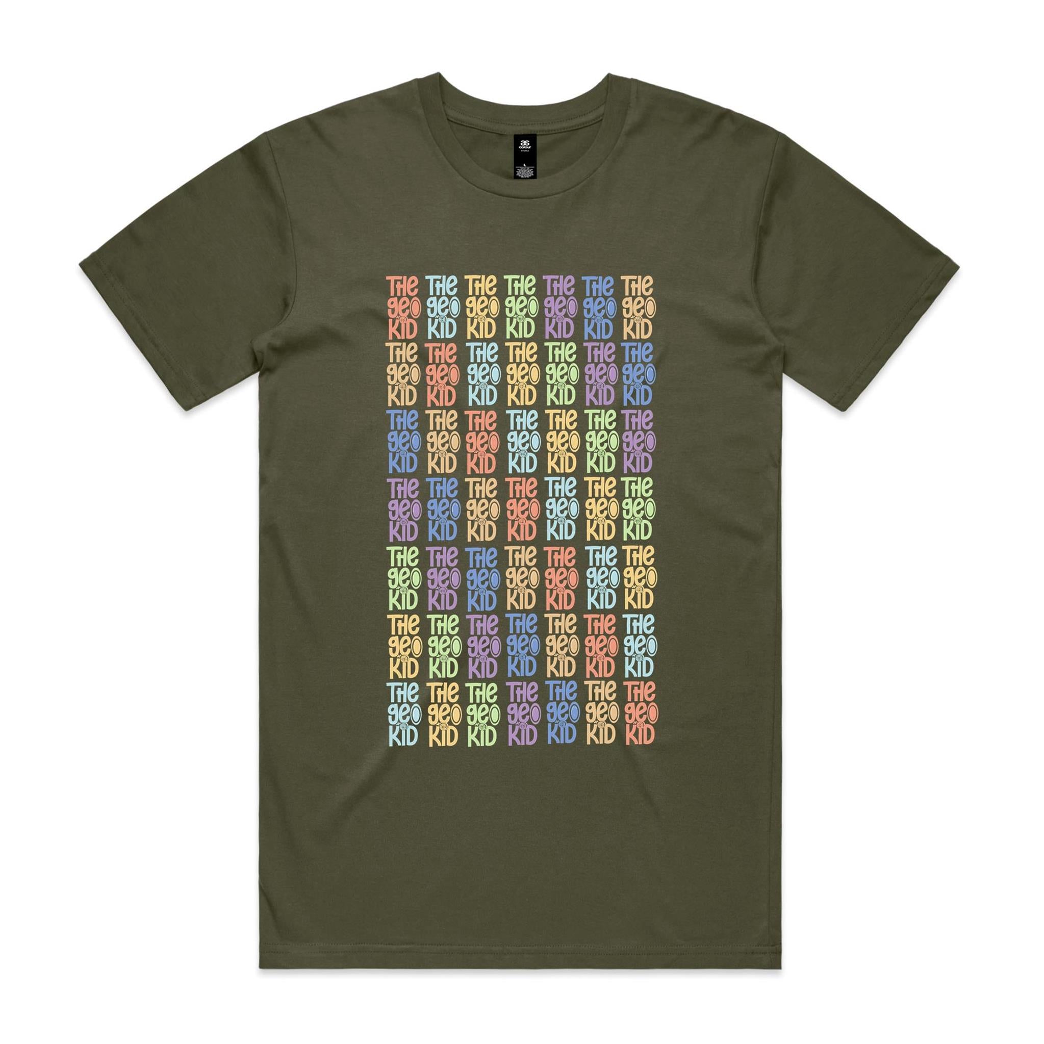 Subtle colour, strong character. The Mosaic Muted tee is for men who appreciate balance — a repeating pattern of The Geo Kid logo in seven earthy tones that reflect calm confidence. Inspired by autumn’s natural palette, it’s bold in design but relaxed in spirit.