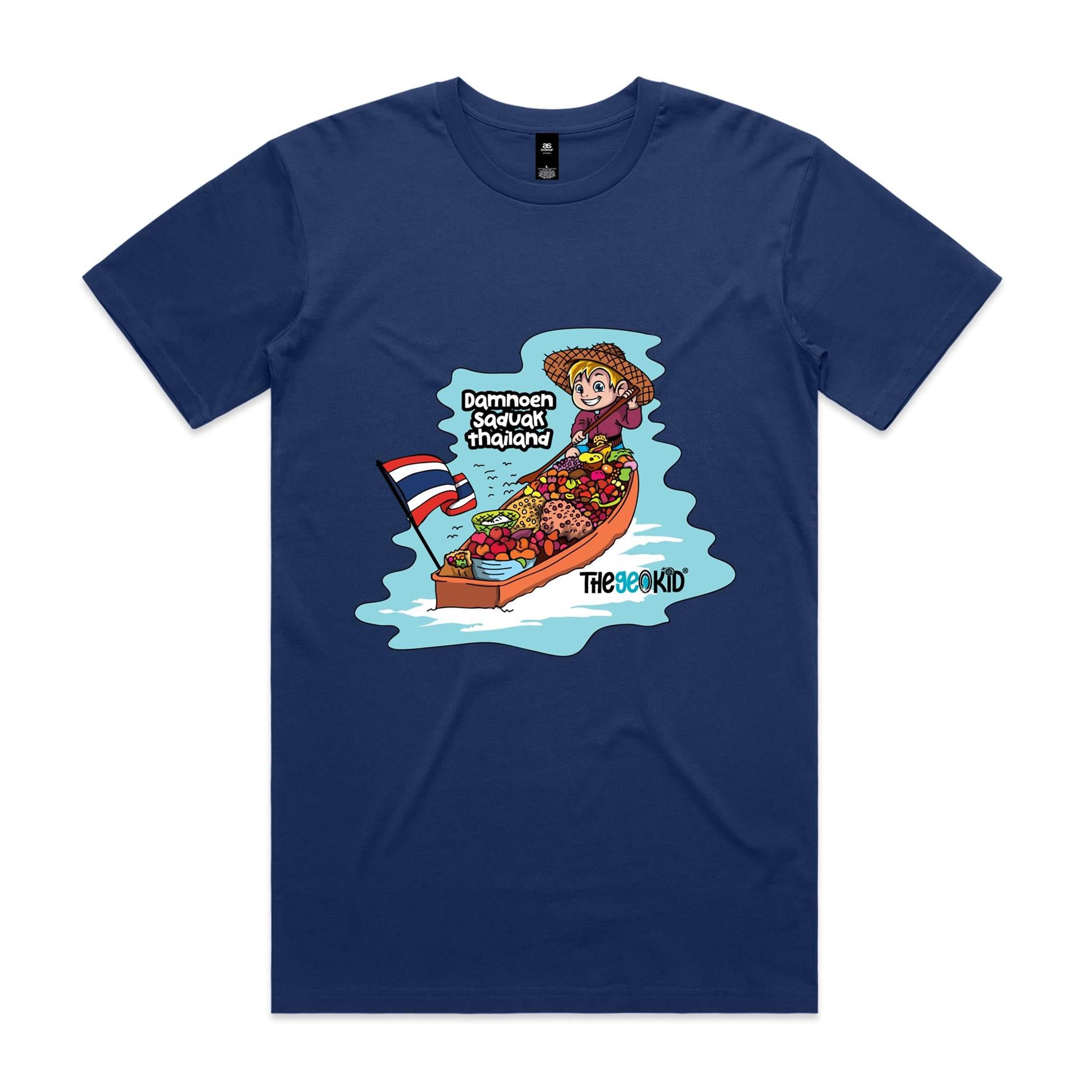 Set sail through Thailand’s iconic canals with our Damnoen Saduak Floating Market T-Shirt – part of our bold and adventurous Tasty Travels range. This shirt features our globe-trotting Geo cruising in a long-tail boat loaded with colourful fruits and veggies, just like the vibrant scenes you’ll find at Thailand’s most famous floating market.