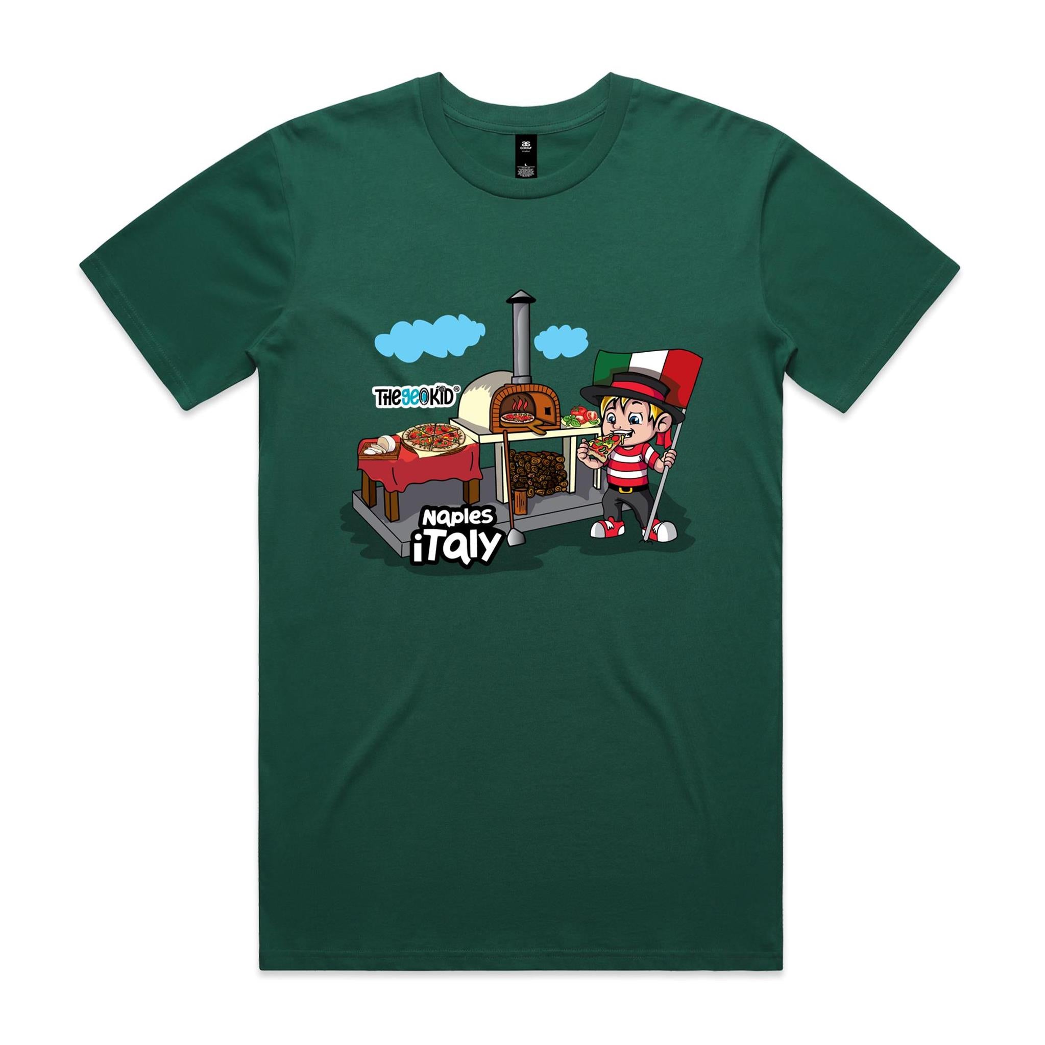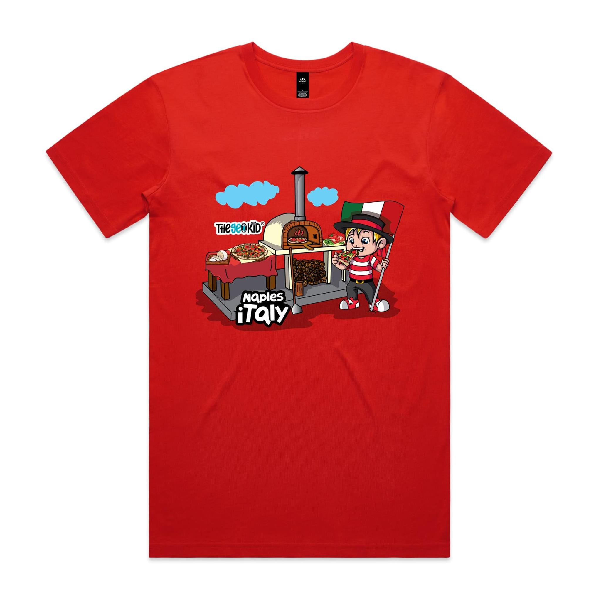 Step into the streets of Naples with our Naples, Italy T-Shirt, a flavour-packed tribute to the home of the world’s most iconic dish — pizza. This Tasty Travels design features Geo surrounded by the freshest Italian ingredients — tomatoes, garlic, and basil — bursting from the shirt just like a perfect Neapolitan slice.