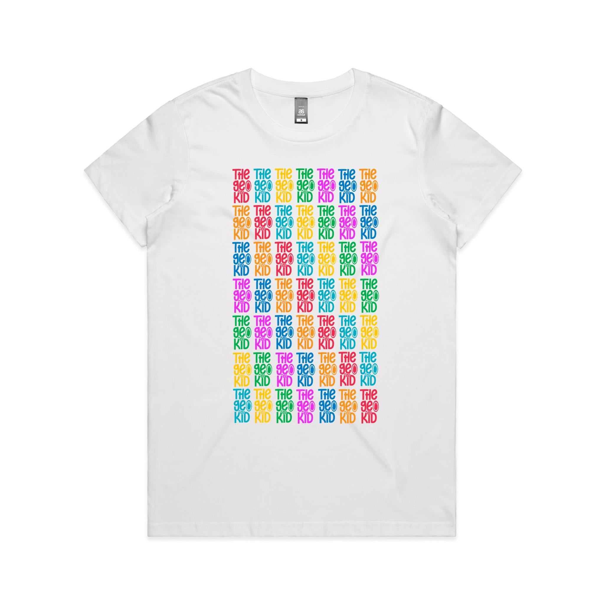 Bold, bright, and full of life — our Mosaic Bold tee is a celebration of creativity, curiosity, and confidence. Featuring our Geo Kid logo repeated in a checkerboard pattern of red, blue, pink, yellow, green, orange, and dark blue, this design radiates energy and optimism.