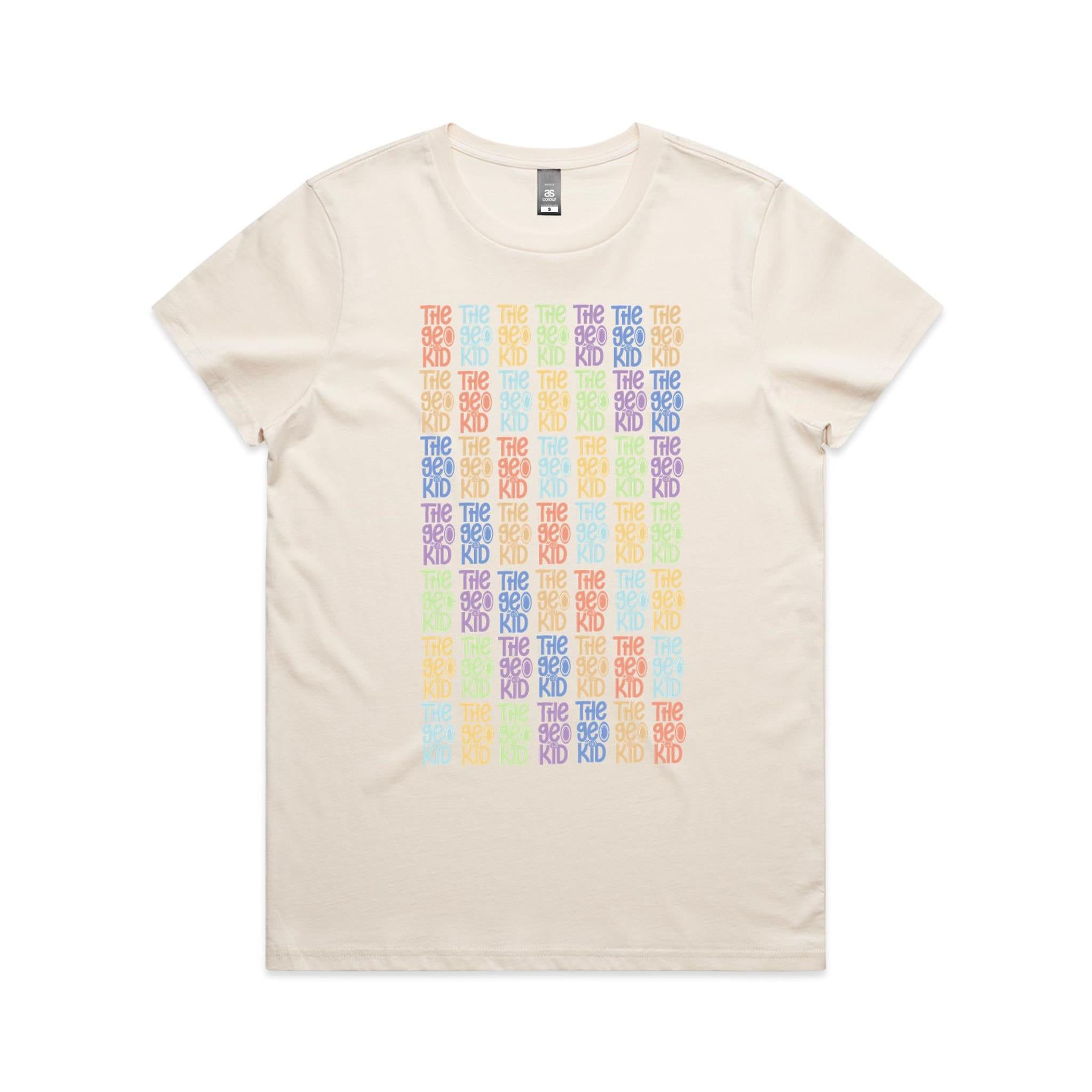 Gentle hues, strong spirit. Our Mosaic Muted tee blends elegance with exploration — a soft grid of seven earthy tones that reflect the calm beauty of nature. Each repeating Geo Kid logo forms a soothing mosaic of balance and style.