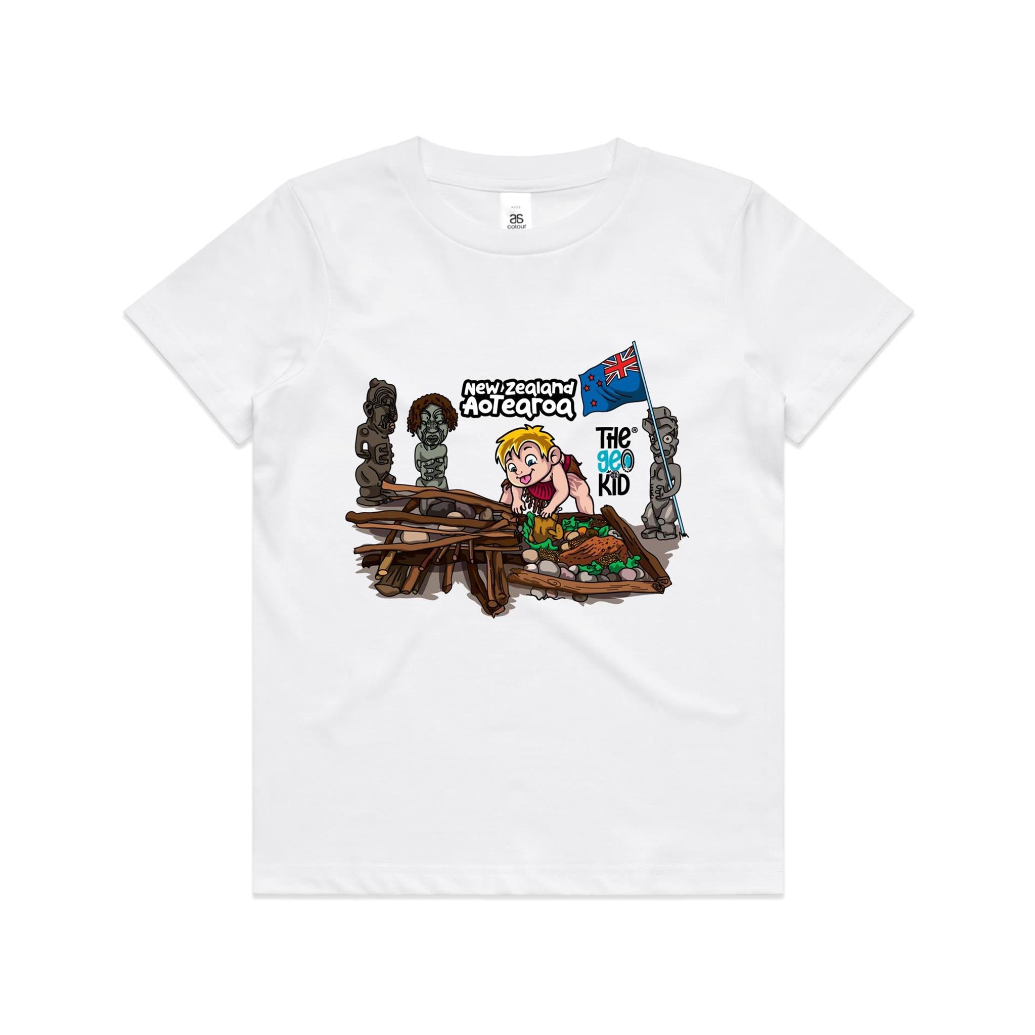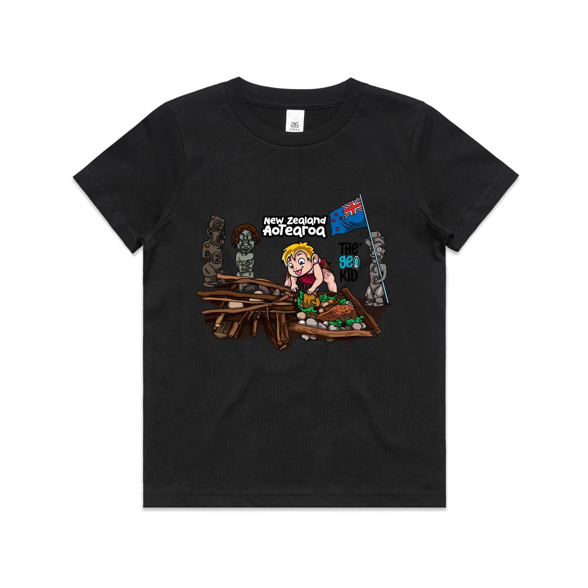 Discover the wonder of Māori culture through food with our Aotearoa New Zealand Hāngī T-Shirt, made just for curious kids and teens who love learning about the world. This design was inspired by our journey through New Zealand, where we had the incredible opportunity to enjoy a traditional hāngī meal prepared by Māori hosts.
