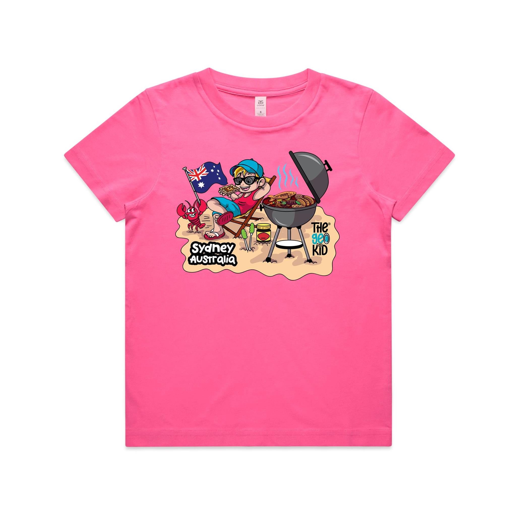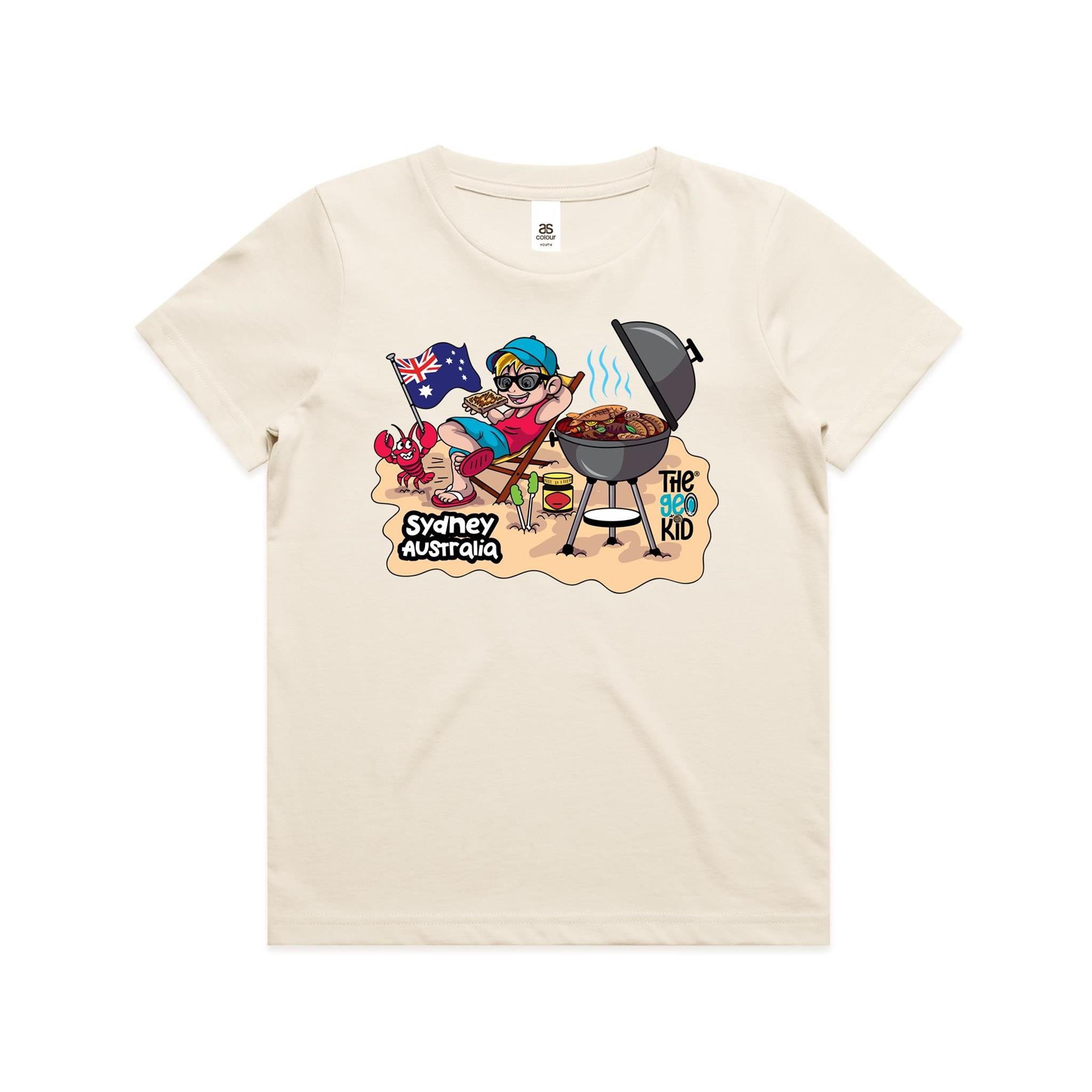 Get your young explorer ready for a taste of Aussie life with our Sydney Beach BBQ T-Shirt, designed for kids and teens who love sunshine, good food, and fun outdoors. Featuring Geo lounging beside a sizzling BBQ by the beach, and even some Vegemite!!, this tee celebrates a classic Sydney pastime — grilling up seafood and sausages by the surf.